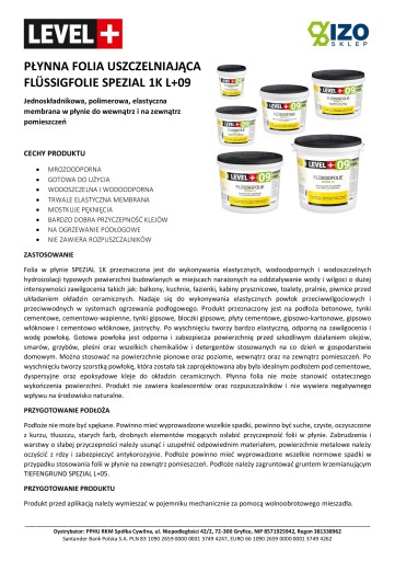 PŁYNNA FOLIA USZCZELNIAJĄCA FLÜSSIGFOLIE SPEZIAL 1K L+09