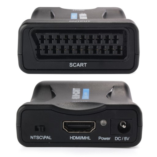 Konwerter HDMI do SCART pozwala konwertować sygnał wejściowy cyfrowy 720P / 1080P HDMI do sygnału wyjściowego analogowego 480i (NTSC) / 576i (PAL).