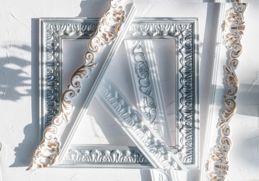 3. Rama. Jeśli chcemy obramować lustro umieszczone na ścianie albo nieoprawiony obraz, możemy to zrobić za pomocą listew sztukateryjnych.
