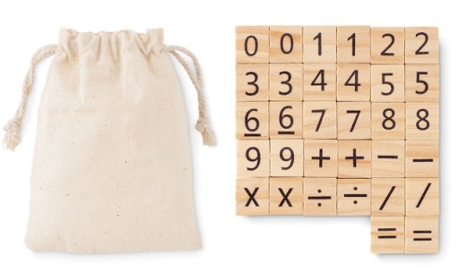 Drewniana gra edukacyjna do liczenia w bawełnianym woreczku. Zawiera 32 elementy.