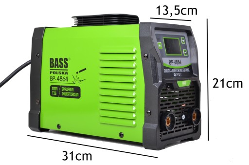 Spawarka inwertorowa BASS POLSKA to wysokiej klasy urządzenie spawalnicze do prac metodą MMA (spawanie szeroką gamą elektrod otulonych), a także, przy wykorzystaniu dodatkowego przewodu TIG z zaworem w rękojeści, do spawania metodą TIG (elektrodą nietopliwą).