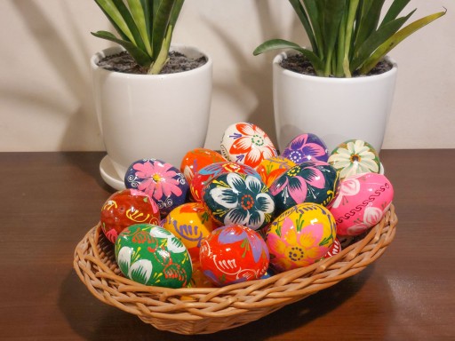 Ozdobione jajka są nieodzownym elementem do przyozdobienia koszyka oraz stołu wielkanocnego.