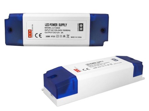 Uniwersalny zasilacz 12V do podłączenia np. taśm LED lub innych urządzeń zasilanych 12V o mocy max. 36W.