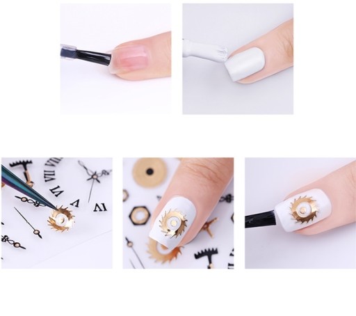 Naklejki nadają się do użycia z lakierami klasycznymi, hybrydowymi oraz żelami uv i akrylożelami.