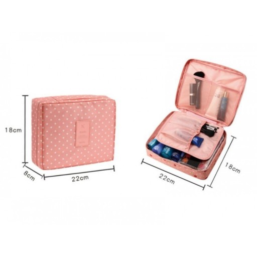 Kosmetyczka w sam raz na dłuższe podróże czy wyjazdy - jest bardzo poręczna i pojemna, pomieści wszystkie niezbędne rzeczy.