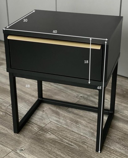 Szafka nocna CZARNA ZŁOTA LOFT w to uniwersalny produkt, który wpasuje się w niemal każdy styl. Zestawienie wyrazistej czerni i koloru złota to obecnie najbardziej stylowe połączenie. Dzięki projektowi inspirowanego eleganckim designem Twoja sypialnia, przedpokój, salon nabiorą funkcjonalności oraz wyjątkowości. Połączenie zaprezentowanych kolorów z ręcznie wykonanym stelażem to klucz to lekkiego, zgrabnego a zarazem eleganckiego look’u.