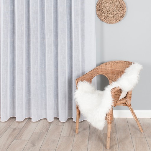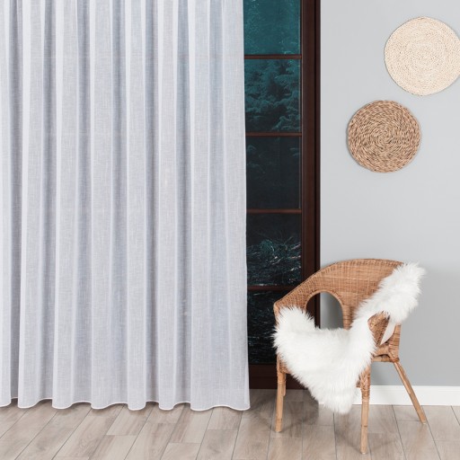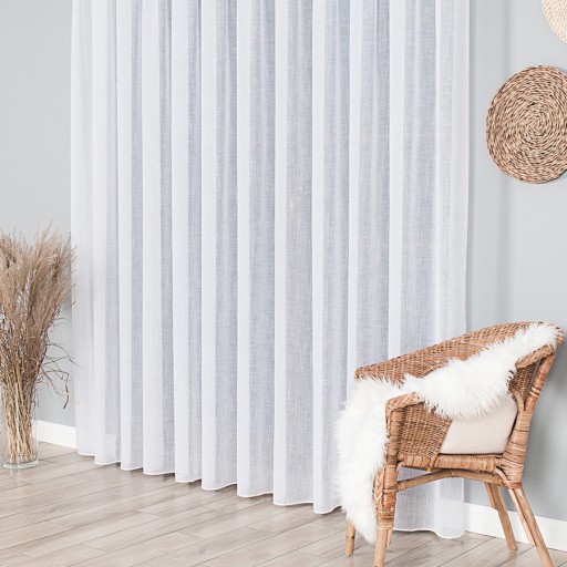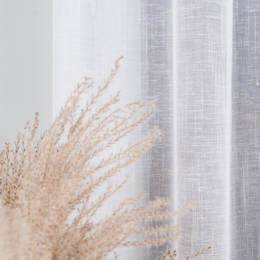 Klasyczna śnieżnobiała firanka o strukturze lnu, idealna do wszystkich pomieszczeń. Drobny deszczyk i przetarcia dodają naturalnego i ciekawego wyglądu firanie, czyniąc ją bardzo uniwersalną.