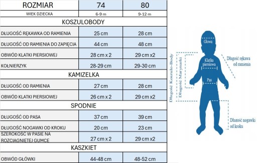 ROZMIAR UBRANEK Z TABELI PROPONUJEMY PORÓWNAĆ Z AKTUALNIE PASUJĄCYMI UBRANKAMI