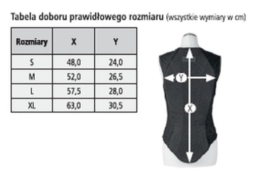 Kamizelka ochronna zabezpieczająca plecy oraz kość ogonową. Spełnia aktualne normy bezpieczeństwa: