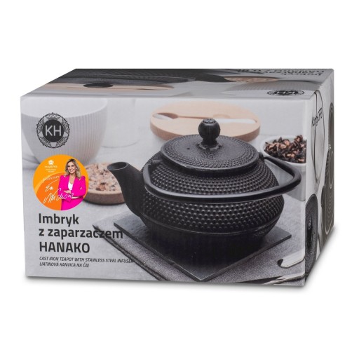 Czarny imbryk do herbaty z zaparzaczem Konighoffer Hanako 0,8 l wykonany jest z żeliwa. W zestawie znajduje się również nierdzewny zaparzacz. Dzięki niemu oddzielisz susz od wrzątku i sprawnie poradzisz sobie z przerwaniem procesu parzenia esencji. Wnętrze czajniczka wykończono nietoksyczną emalią w kolorze czarny. Ułatwi ci ona pielęgnację i zadba o walory naparu. Model długo trzyma ciepło. Możesz ustawić go na podgrzewaczu (do 60 minut!). Duża rączka imbryka ułatwia jego przenoszenie, a także nalewanie herbaty do kubków i filiżanek. Pokrywka korpusu umożliwia wydajną regulację pary wewnątrz. Produkt ma rekomendację Ewy Wachowicz. Jako ambasadorka marki Konighoffer, gorąco i z uśmiechem poleca go ona do domowego użytku. Razem z nim zdobędziesz twój przepis na dom. To jedna z najlepszych opcji w tej kategorii!