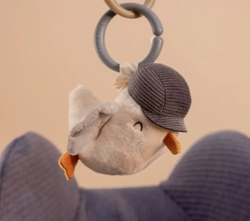 Zabawka z wibracją - mewa Jack, która po pociągnięciu zaczyna wibrować co uwielbiają maluchy. Jest to niezwykle interesujące dla dziecka. Dzięki pierścieniowi zawieszkę mewę można łatwo przyczepić do fotelika samochodowego czy gondoli wózka. Jest niezwykle urocza i mięciutka.