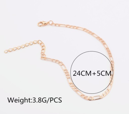 Oferuję elegancką bransoletkę na nogę wykonaną z metalu o nietypowym, przyciągającym wzrok łańcuszku.