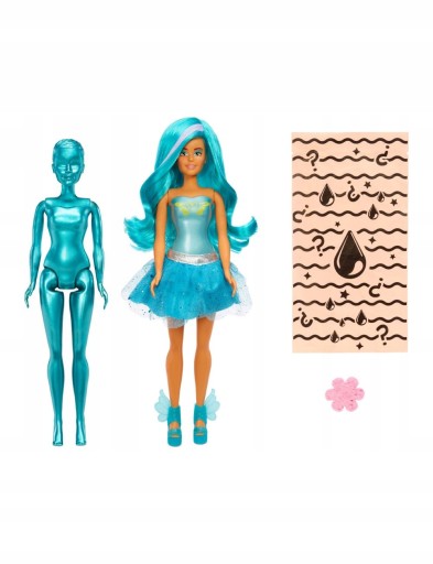 ZANURZ JĄ W WODZIE: Rozpakuj lalkę pokrytą brokatem od stóp do głów. Zanurz lalkę w lodowatej kąpieli, aby odkryć, jaką magiczną wróżkę masz! Użyj dołączonej miękkiej gąbki, aby zetrzeć brokat.