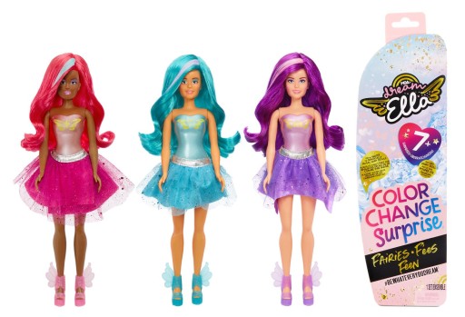 WRÓŻKI COLOR CHANGE: MGA Dream Ella Color Change Surprise Fairies Fashion Dolls dostarczają zabawy z odpakowywania, które jest pełne niespodzianek! W każdym opakowaniu znajduje się modna lalka, ale wygląd każdej lalki pozostaje tajemnicą, dopóki nie zostanie ujawniony poprzez zabawę ze zmianą koloru.