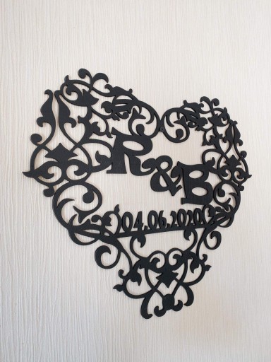 Jest to spersonalizowana ozdoba w kształcie serca z wyciętymi Waszymi Inicjałami oraz datą która jest dla Was szczególnie ważna.