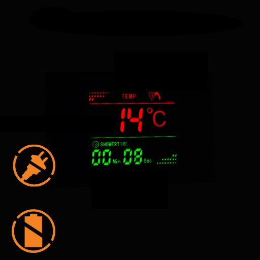- ledy i wyświetlacz są zasilane poprzez turbinę wodną, nie potrzeba baterii