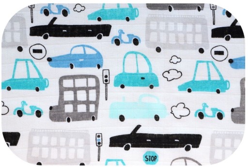 Wzory pieluszek: jelonek, auta duże, rybki, turkusowa, auta z żółtym.