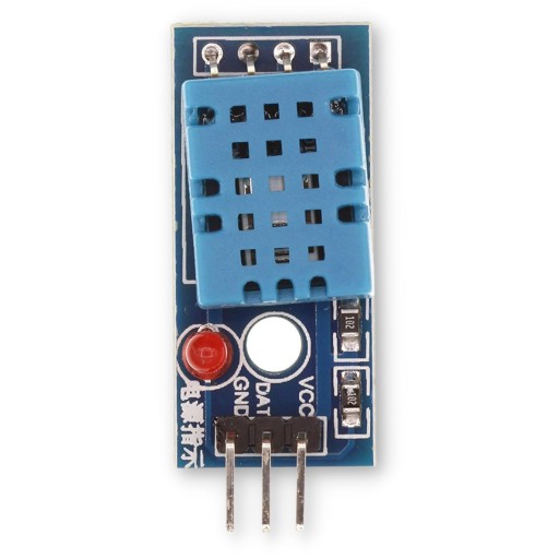 Moduł czujnika do pomiaru temperatury i wilgotności. Oparty na interfejsie cyfrowym jednoprzewodowym. Sprzedawany czujnik umieszczony jest na płytce PCB, a do zestawu dodatkowo dołączone są trzy przewody umożliwiające podłączenie do płytki sterującej. Zakres pomiarowy temperatury wynosi: 0 - 50 °C, dokładność wynosi: 1 °C. Zakres pomiarowy wilgotności: 20 - 90% RH, dokładność wynosi: +/- 4 RH (przy 25 °C).