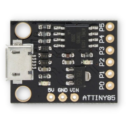 Małych rozmiarów moduł z mikrokontrolerem z rodziny AtTiny. Często używany w projektach, w których nie jest wymagane wiele wyprowadzeń. Urządzenie posiada 8kb pamięci Flash oraz 6 portów I/O. Na płytce wbudowane jest złącze MicroUSB. Moduł jest kompatybilny i programowalny w środowisku Arduino IDE. Napięcie zasilania wynosi 5V lub od 7V do 35V, dzięki regulatorowi 5 V / 500 mA.
