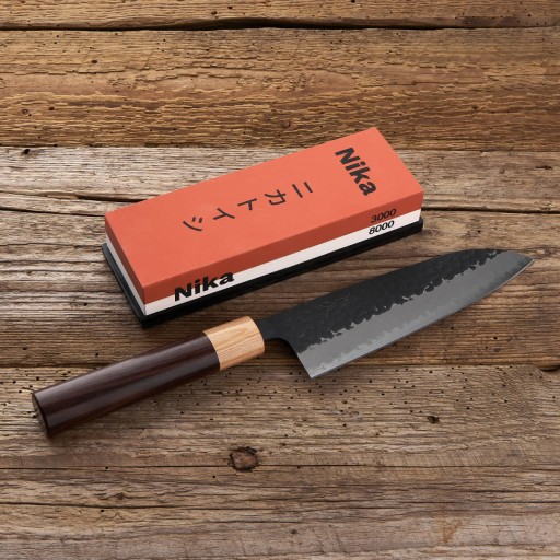 Ostrzałka do noży NIKA 3000/8000 - dwustronny kamień wodny do ostrzenia noży + podstawka