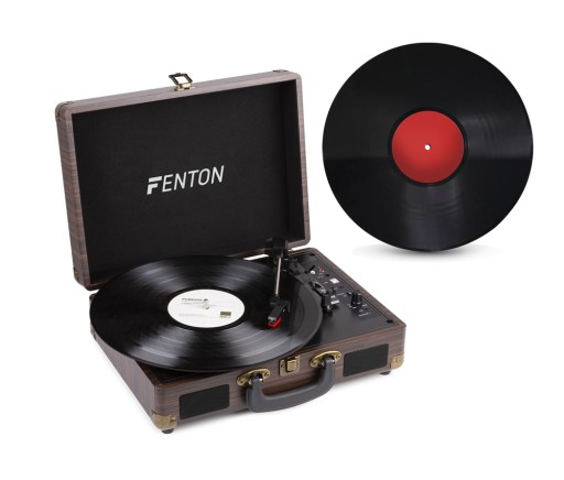 Mały gramofon Fenton RP115 z wbudowanym wzmacniaczem i głośnikami stereo, po za odtwarzaniem płyt winylowych posiada jeszcze łączność Bluetooth, a nagranie z płyt winylowych można uwiecznić poprzez podłączenie gramofonu z portem USB do komputera zapisując nagranie w postaci mp3, po za tym posiada wyjście sygnału np. gramofon można podłączyć pod wzmacniacz, oraz wejście aux, jak i możliwość podłączenia słuchawek, a wszystko jest zamknięte w lekkiej grafitowej walizce.