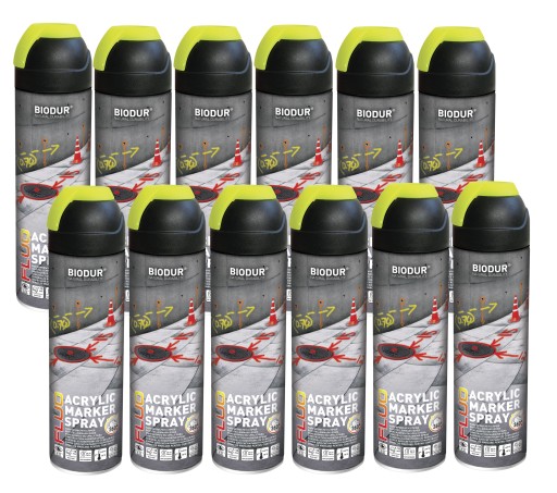 BIODUR CONSTRUCTION MARKER. Fluo to lakier specjalistyczny do znakowania, stosowany w budownictwie, geodezji, energetyce, oraz wielu innych branżach.