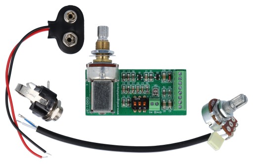- Zestaw zawiera: instrukcja (pdf), złącze baterii, potencjometr tone, 6.3mm stereo jack (gniazdo),