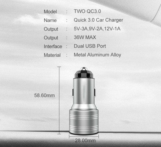ŁADOWARKA SAMOCHODOWA 36W QUICK CHARGE 3.0
