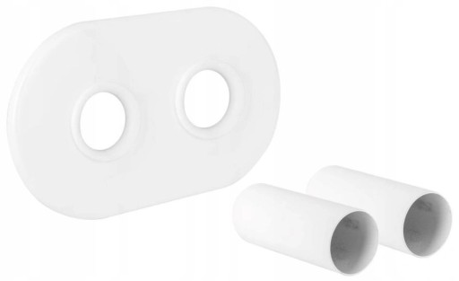 Zestaw podwójnej, owalnej rozety wraz z tulejami przeznaczony jest do zamaskowania podłączenia grzejnikowego, dolnego, zespolonego, dekoracyjnego. Połączenie z instalacją wykonane z rur wielowarstwowych i miedzianych. Rozeta posiada 2 otwory na przepuszczenie przyłączy grzejnikowych z rozstawem 50 mm. Tuleje maskujące o długości 50 mm pasują do rurki podłączeniowej o średnicy 16 mm - PEX i 15,18 mm - miedź.