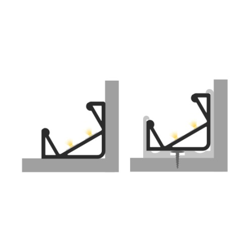 Profil P3-4 jest profilem narożnym o kącie kierowania światła równym odpowiednio 30 i 60 stopni. Najczęściej stosowany w narożnikach mebli lub ścian. Dzięki estetycznemu wykończeniu z każdej strony, profil również może być montowany blisko frontów szafek, kierując światło do ich środka. Wykonany z wysokiej jakości anodowanego aluminium