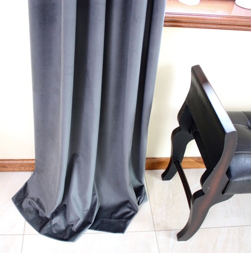 Przedmiotem sprzedaży przepiękna mięsista zasłona uszyta z weluru w kolorze ciemno szarym . Zasłona w dotyku jest bardzo miękka i przyjemna , bardzo dobrze się układa . Stopień zaciemnienia około 70 %.