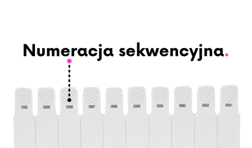 Na zapięciu RapidLock ¾ nanosimy specjalną, sekwencyjną numerację co pozwoli na bardziej szczegółową ewidencję, jak i kontrolę podczas wejścia na wydarzenie / imprezę. Do tego wszystkiego stosujemy specjalne nacięcia w kształcie litery "W" co chroni przed przekazaniem opaski innej osobie. Raz ściągnięta opaska nie nadaje się do ponownego użycia.