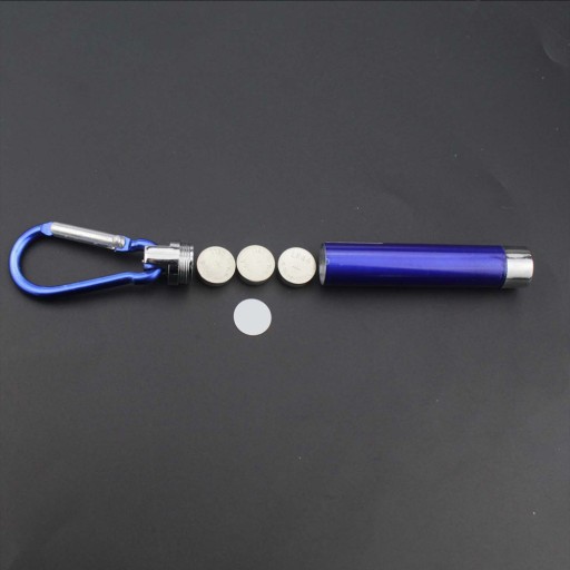 - Laser zasilany na 3 baterie LR44 (w zestawie, zabezpieczone papierem)