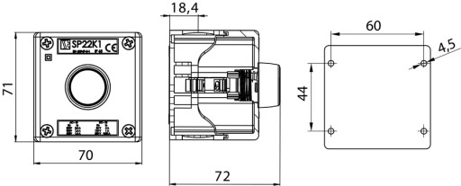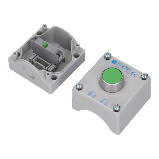 Przyciski sterownicze SP22 służą do załączania bądź rozłączania prądów o natężeniu do 2,5 A, sygnalizacji świetlnej oraz dźwiękowej w pulpitach maszyn, szafach sterowniczych. Przyciski sterownicze i lampki sygnalizacyjne SP22 mają budowę członową. Przyciski sterownicze lub lampki sygnalizacyjne SP22 dostarczane są jako kompletne wyroby lub w postaci członów stanowiących elementy funkcjonalne przycisku lub lampki. Budowa członowa przycisków i lampek SP22 ułatwia tworzenie potrzebnych wariantów funkcjonalnych przycisków, a także wprowadzenie zmian w istniejących obwodach sterowniczych. Przyciski sterownicze SP22 przewidziane są do wbudowania w znormalizowane otwory o średnicy 22.3 mm,wykonane w pulpitach (tablicach) sterowniczo-sygnalizacyjnych lub bezpośrednio w korpusach maszyn i urządzeń. Część nadpulpitowa przycisków wykonana jest w kolorze czarnym lub pokryta niklem satynowym.