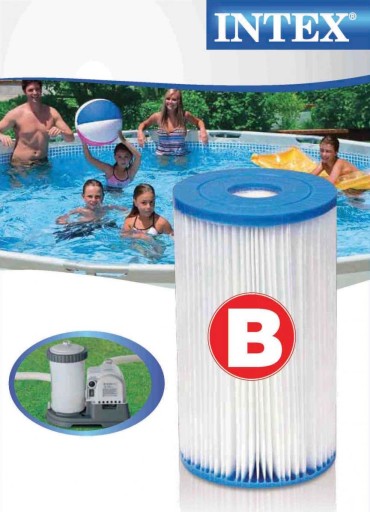 Jeżeli chcesz, by woda w twoim basenie pozostawała idealnie czysta pamiętaj o regularnej wymianie lub systematycznym czyszczeniu filtra. Najlepszym sprzymierzeńcem w walce z brudną wodą jest jej skuteczne filtrowanie. Wkłady filtracyjne papierowe należy wymieniać raz na 2-4 tygodnie. Filtr dakronowy INTEX typu B jest w stanie skutecznie filtrować wodę przez okres kilku miesięcy (czas użytkowania zależny jest od od stopnia zabrudzenia wody i częstotliwości korzystania z basenu). Można znacznie wydłużyć żywotność filtra dakronowego myjąc go przynajmniej raz w tygodniu wodą z węża ogrodowego pod wysokim ciśnieniem. Prawidłowo umyty filtr powinien być biały. Tą prostą czynnością można zadbać o jakość wody w basenie bez uszczuplania domowej skarbonki. Regularnie czyszczony filtr INTEX typu B pozwoli Ci cieszyć się czystą wodą w basenie przez znacznie dłuższy czas nawet przez cały sezon. Jeśli mimo to będą widoczne zabrudzenia to wtedy filtr należy wymienić na nowy.
