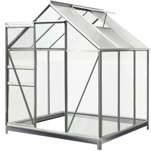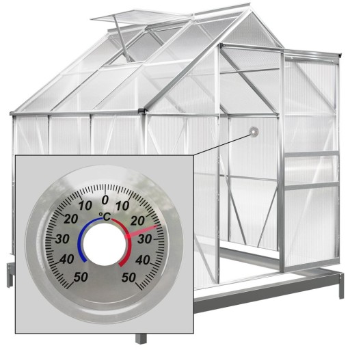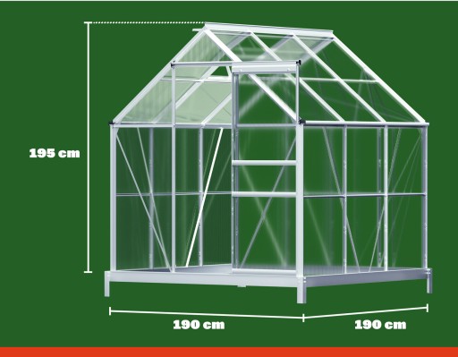Wysokiej jakości i stabilna szklarnia z oknem dachowym, składająca się z anodowanych profili aluminiowych i termoizolacyjnych płyt komorowych.