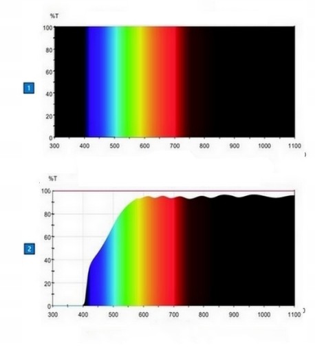Wykres 2️⃣ pokazuje jak bardzo nasze okulary redukują szkodliwe światło UV i światło niebieskie. Aż 40%.
