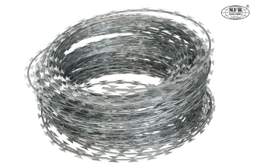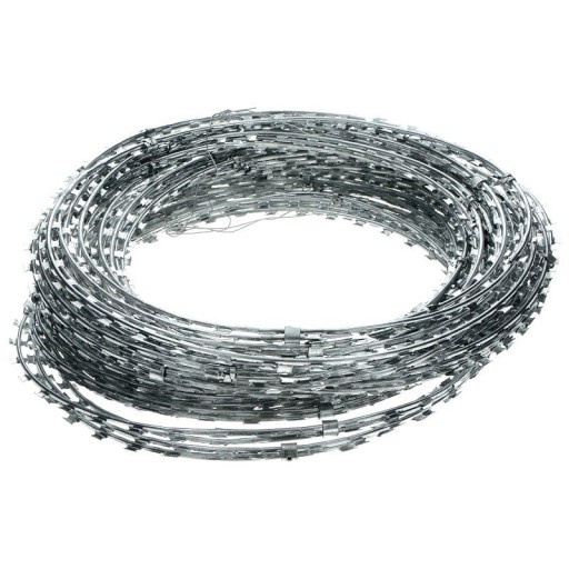 Drut kolczasty, gotowy zasiek produkt wysokiej jakości przeznaczony do zabezpieczenia ogrodzenia w jednostkach wojskowych, więzieniach, zakładach karnych, aresztach śledczych, magazynach, składach budowlanych oraz w obszarze cywilnym na ogrodzeniach posesji lub garażu. Zwoje drutu są fabrycznie połączone spinkami tworząc gotowy zasiek.