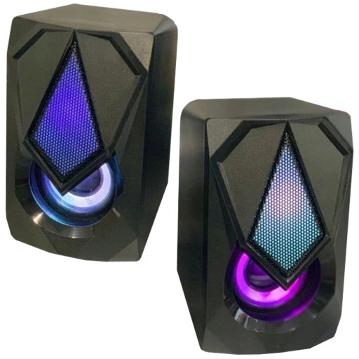 - Wysokiej jakości stereofoniczne głośniki USB z podświetleniem LED RAINBOW.