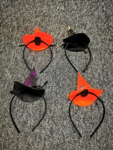 Tajemniczy i uroczy: pakiet zawiera 4 różnych opasek na głowę z kapeluszem czarownicy. Błyszczące kontury czarownic, pająków, pająków, dyń, gwiazd itp. W kolorze fioletowym, srebrnym i złotym sprawiają, że czapka wygląda tajemniczo i uroczo. Dzieci pokochają te urocze czapki wiedźmy.