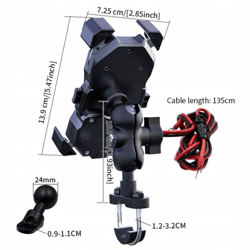 ИНДУКЦИОННОЕ ЗАРЯДНОЕ УСТРОЙСТВО ДЛЯ МОТОЦИКЛА QI QC3.0 ДЕРЖАТЕЛЬ ДЛЯ ТЕЛЕФОНА ЦЕЛЬНЫЙ МЕТАЛЛ