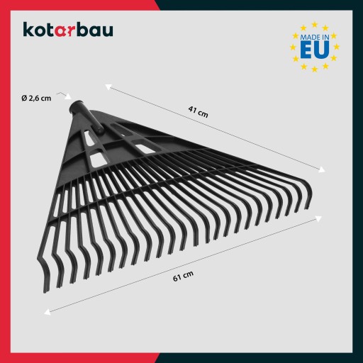 - Dzięki szerokiej głowicy narzędzie jest w stanie zgarniać nawet najdrobniejsze kawałki liści, co powoduje, iż finalna czynność grabienia staje się dużo szybsza i bardziej dokładna.