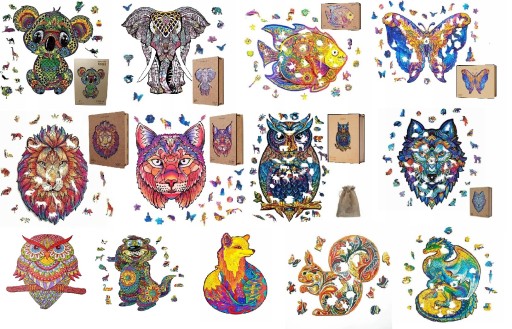 Przedstawiam drewniane puzzle dla dorosłych z elementami w kształcie zwierząt i nie tylko!