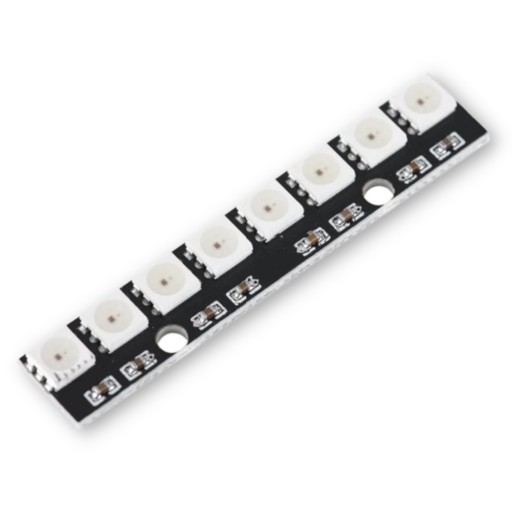 Listwa złożona jest z 8 indywidualnie adresowanych diod LED RGB wraz z zintegrowanym sterownikiem. Może być obsługiwana przez większość mikrokontrolerów np. Arduino. Rozmieszczenie diod na listwie mierzącej 53mm jest równe. Pobór prądu przez wszystkie diody wynosi ok. 160 mA. Listwa zasilana jest napięciem od 4V do 7V.