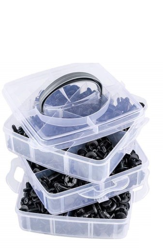 Zestaw 620 ELEMENTÓW, w skład którego wchodzi 16 najpopularniejszych rozmiarów klipsów i łączników mocujących.
