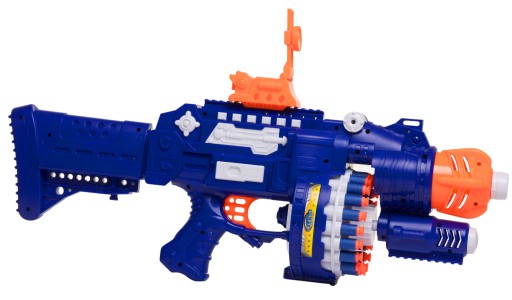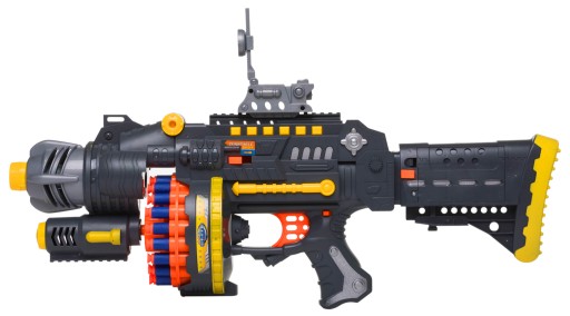 Karabin ma solidne wykonanie ze względu na użyty mocny materiał, ale zarazem jest lekki i bezpieczny dla bawiącego się dziecka - nie ma ostrych, wystających elementów, a pociski są wykonane z delikatnego materiału piankowego.