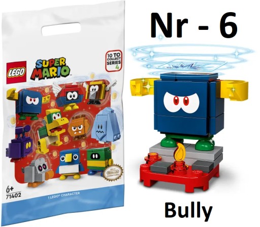 Twórz jeszcze bardziej ekscytujące poziomy dzięki kolekcjonerskim zestawom postaci z serii 4. (71402) . Do zebrania jest 10 postaci LEGO® Super Mario™: Mechakoopa, Para-Biddybud, Stingby, Bully, Freezie, Ant Trooper, Goombrat, Coin Coffer, Scaredy Rat i pingwinek. Każda z postaci pasuje do zestawu startowego (71360 lub 71387), który jest wymagany do interaktywnej zabawy.