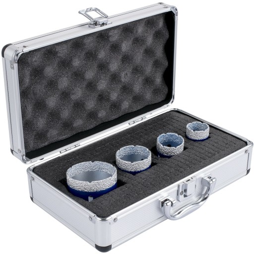Ten wysokiej jakości profesjonalny zestaw wierteł diamentowych z 4 szt. wierteł do otworów i brzeszczotem. Technologia lutowania próżniowego zapewnia szybkie, proste i czyste cięcie. Nadaje się do porcelany, granitu, marmuru.