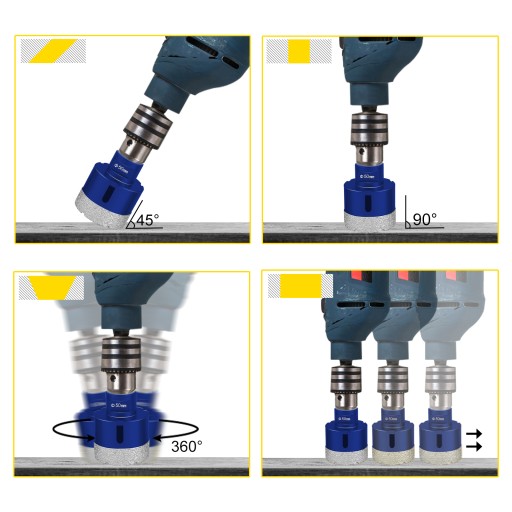 Szerokie zastosowanie: Zestaw wierteł diamentowych zapewnia czysty i dokładny otwór w płytkach porcelanowych, granicie, marmurze i kamieniu. Dotyczy to również murów, cegieł i wszystkich podobnych materiałów.
