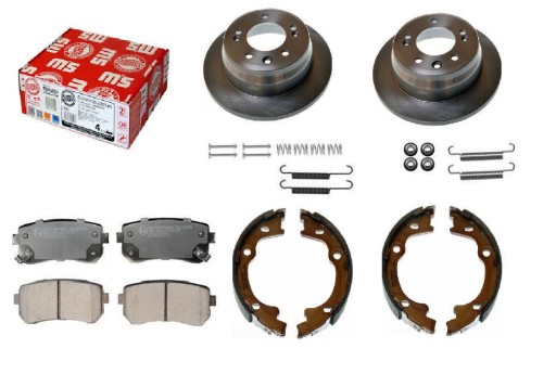 KOMPLET TARCZ HAMULCOWYCH RAZEM Z KLOCKAMI HAMULCOWYMI I SZCZĘKI HAMULCA RĘCZNEGO NA TYŁ FIRMY MASTERSPORT/DENCKERMANN